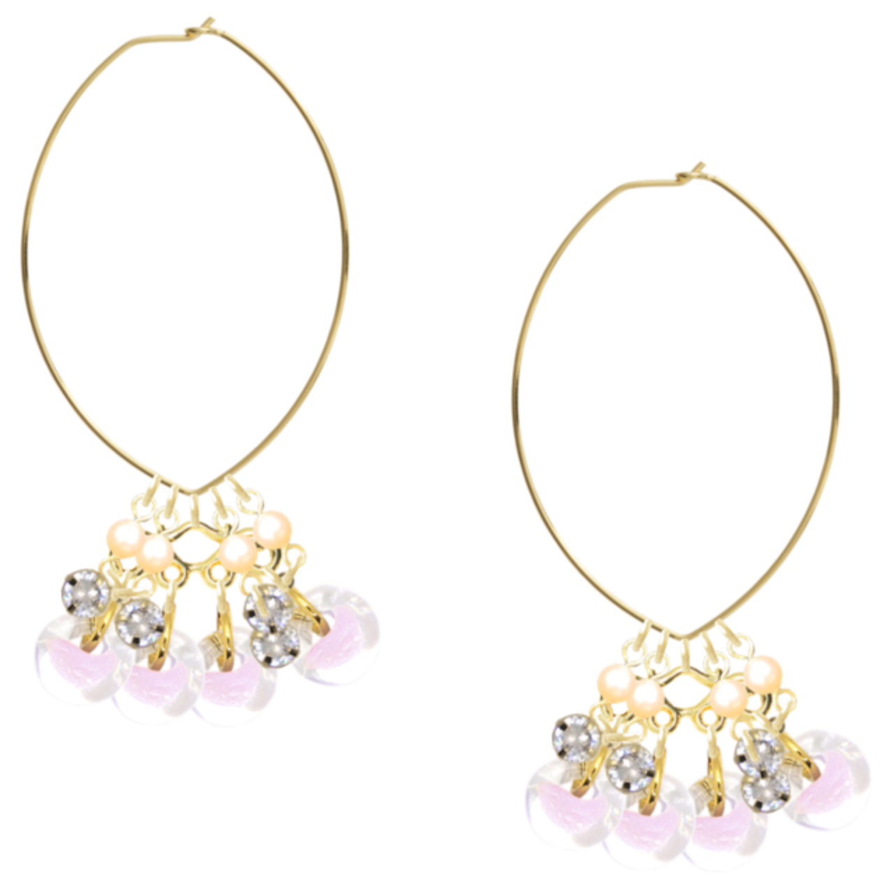 ショッピングモールnagicocoでパールホワイトの変形ゴールドフープピアスをご購入いただき、誠にありがとうございます。心より感謝申し上げます。こちらの商品は大人のあこや真珠を使用しており、ガラスビーズやジルコニア、ラインストーンと組み合わさった上品なデザインです。個体差による色合いや形状により、あなただけの特別な一品をお楽しみいただけます。