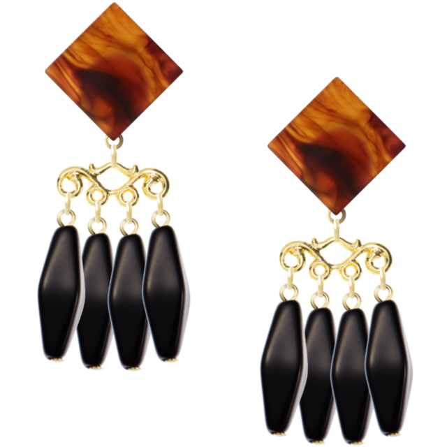 - ジェットやべっ甲、真鍮、ブラウンの組み合わせが上品な雰囲気を醸し出します