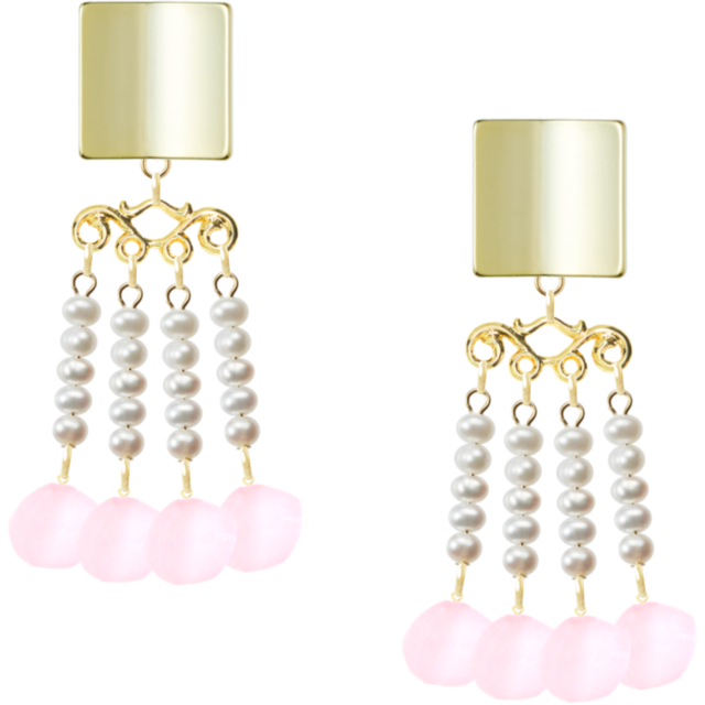 大切なお客様へ、ショッピングモールcoconaをご利用いただき、誠にありがとうございます。当店からは、エレガントかつモダンなデザインのチタンと真鍮素材を使用した四角形の変形ピアスをご紹介いたします。シーグラスのようなマットな質感と透け感が特徴であり、パールのような白い色合いが上品さを演出しています。