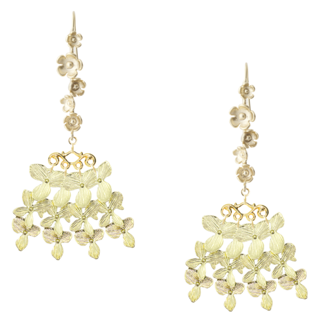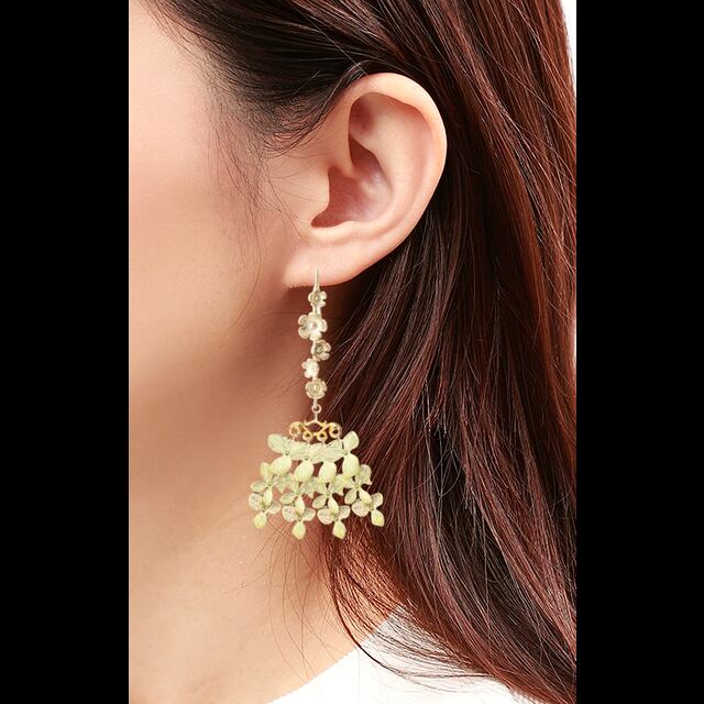 ショッピングモールcoconaをご利用いただき、誠にありがとうございます。今回は、メタル素材を使用した変形デザインのゴールドピアスをご紹介いたします。このピアスは花のモチーフが施され、大ぶりでゴージャスな雰囲気があり、結婚式やパーティーなど特別な場面にぴったりです。春らしい明るい印象を与えるアイテムとなっております。