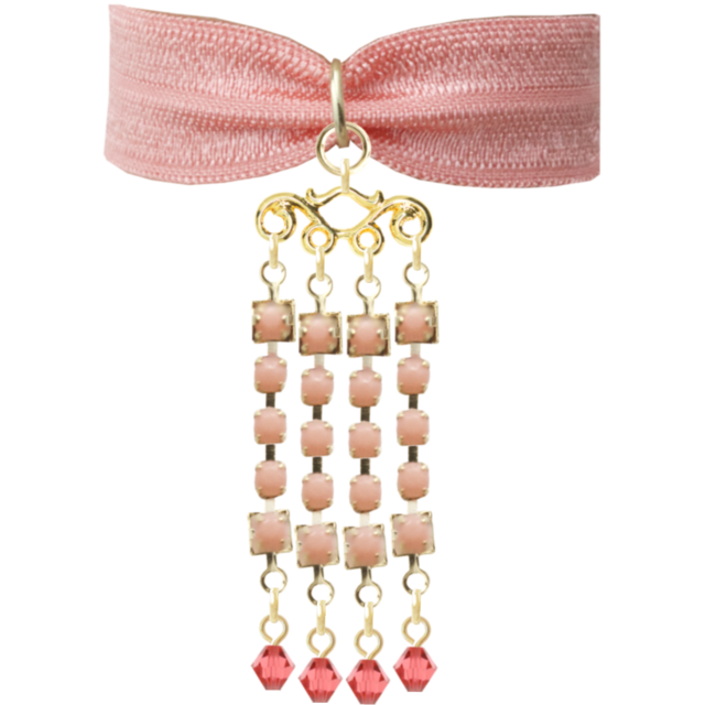 【商品名】アクリル チェーン ピンクコーラル ピンク スワロフスキー 変形 パパラチア ブレスレット