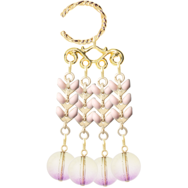 エレガントなデザインのアクリル丸イヤーカフをお届けします。紫と黄色の美しい色合いが特徴で、黄変形を加え、ゴールドの真鍮チェーンがゴージャスさを演出します。このピンクイヤーカフは、夏や秋のコーディネートにぴったりです。