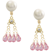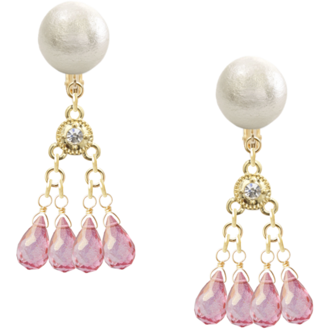 ピンク天然石ドロップイヤリング - トパーズ&コットンパール