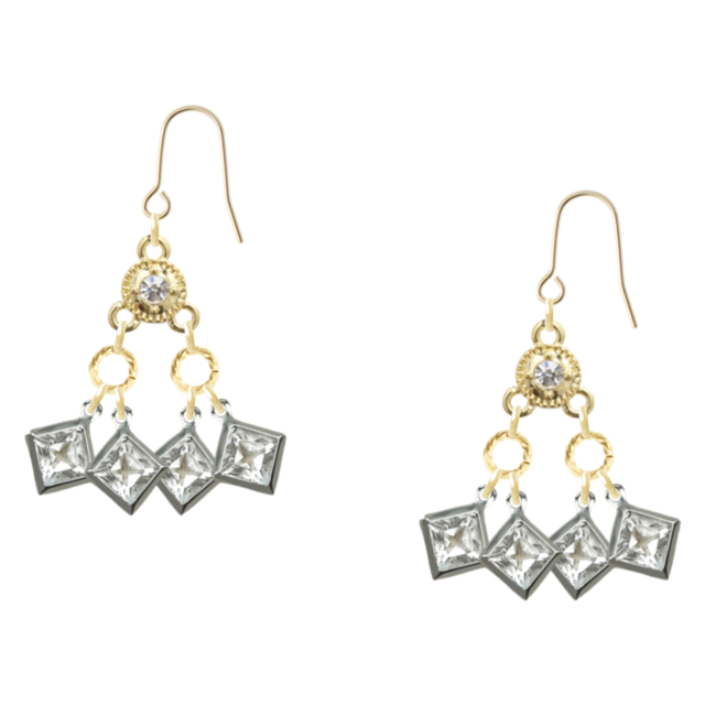 概要: ゴージャスでエレガントなデザインのメタルピアス。クリアなラインストーンが光を反射し、華やかな輝きを放ちます。