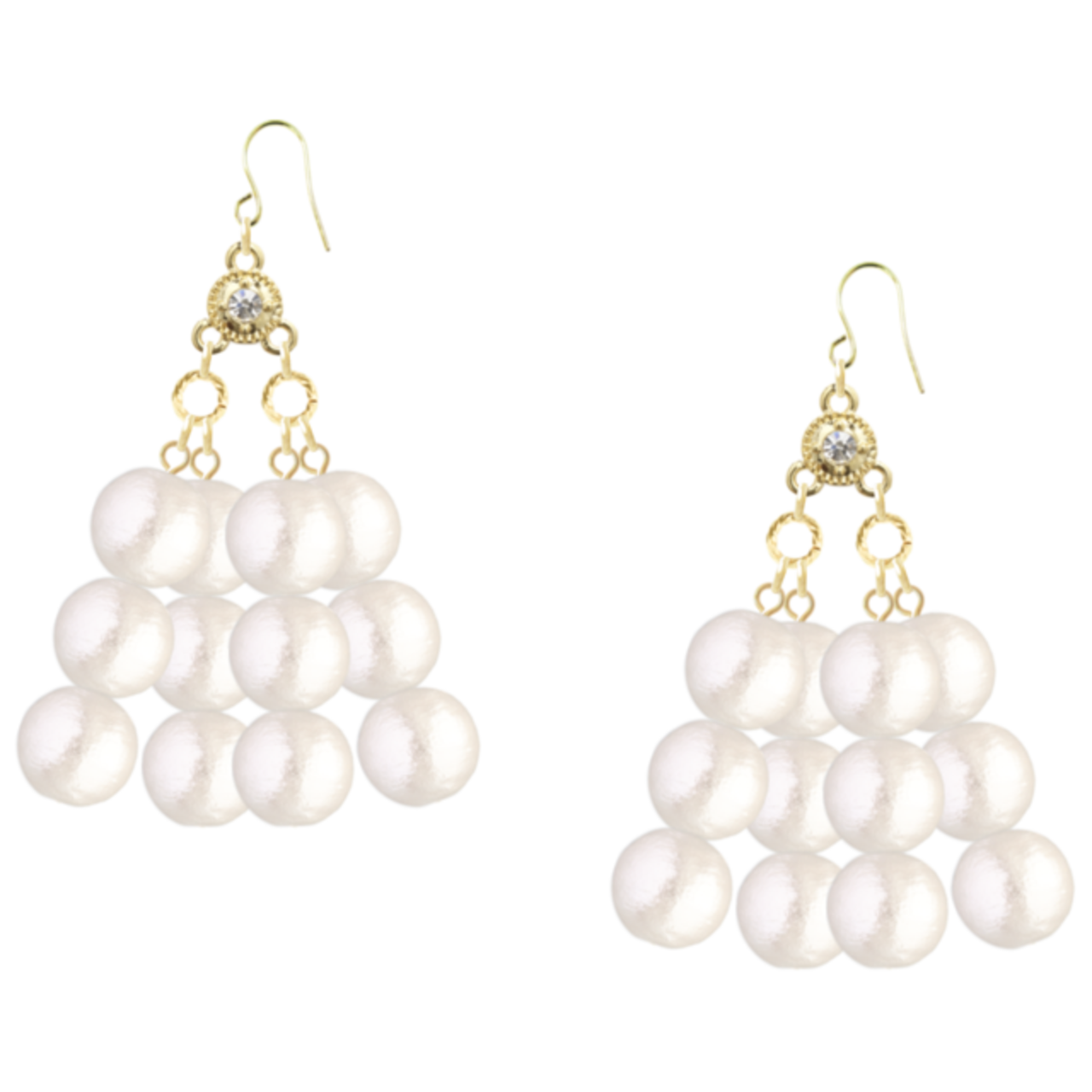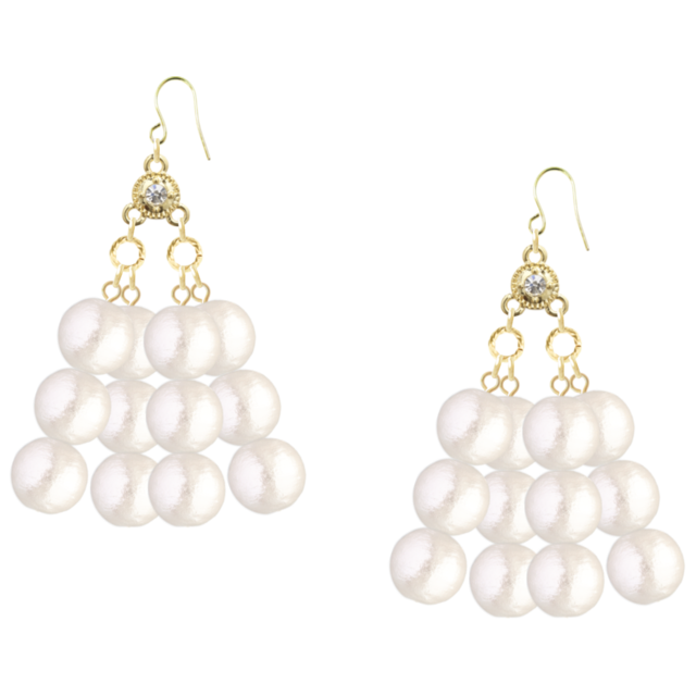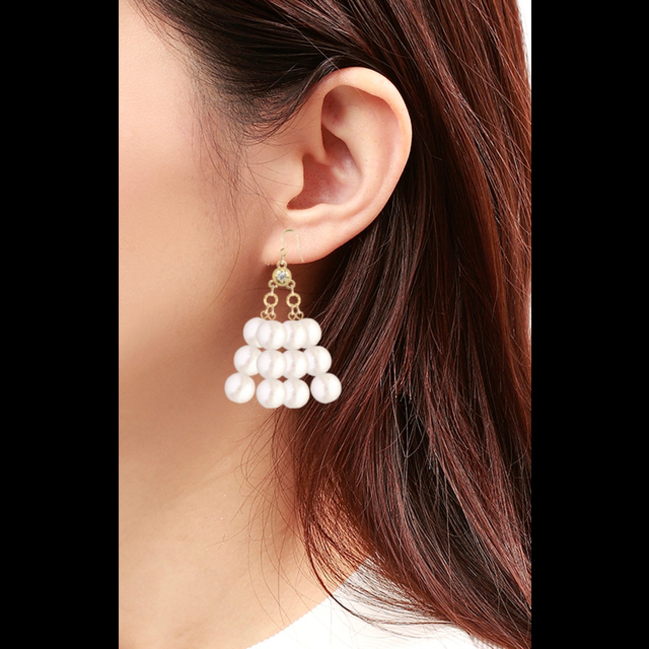 アレルギー対応で安心。軽やかなコットンパールが、耳元を優雅に彩る。