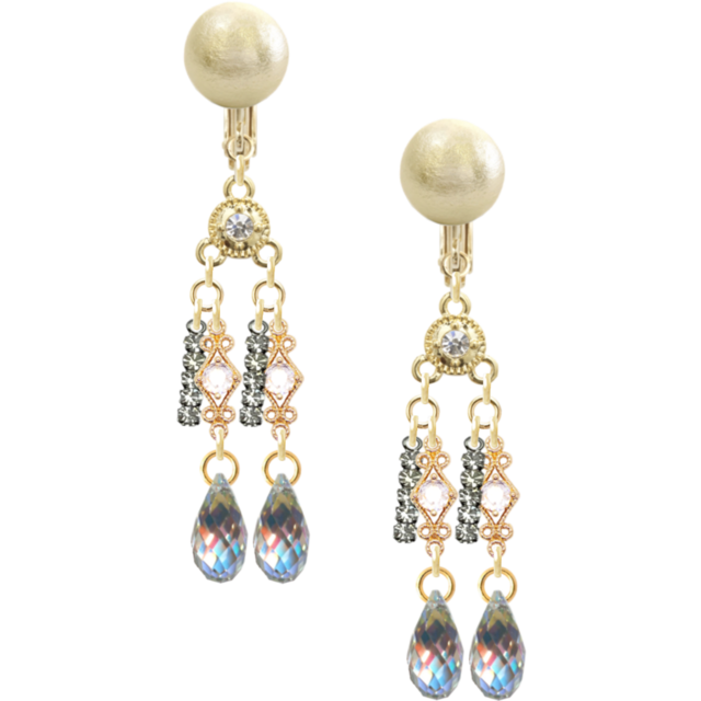 商品名:オーロラクリスタル×キスカパール ドロップデザイン ゴールドイヤリング