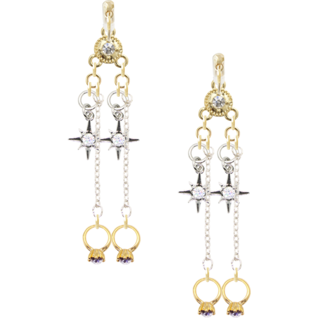 小さな星モチーフは「希望」と「導き」の象徴。丸いクリアラインストーンは光をやわらかく反射し、耳元に透明感を添えます。
