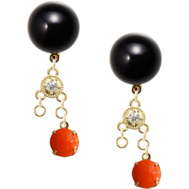 このイヤリングは水(黒)→光(クリア)→火(オレンジ)という流れを持ち、運気の循環を整えるストーリーを持っています。